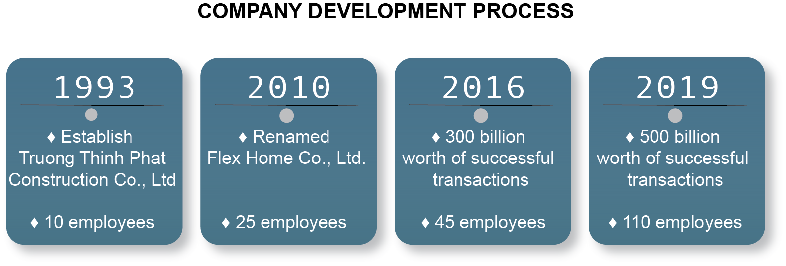 Founded on August 28, 1993 (formerly known as Truong Thinh Phat Construction Co., Ltd.), Flex Home operates in the field of real estate business, building villas for rent.
